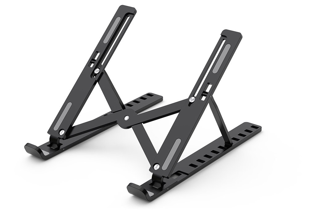 Dieser ergonomische Laptop-Ständer ist faltbar und höhenverstellbar – ein funktionales Werbegeschenk, das Ihre Marke ins richtige Licht rückt. Kompatibel mit allen gängigen Laptop-Modellen, hebt er den Bildschirm auf Augenhöhe und fördert eine bessere Körperhaltung. Die Lüftungsschlitze an der Unterseite sorgen für eine optimale Luftzirkulation und verhindern Überhitzung. Dank des leichten und klappbaren Designs ist der Ständer einfach zu transportieren und lässt sich mit Ihrem Firmenlogo individuell bedrucken – ideal als nützliches und sichtbares Werbemittel.