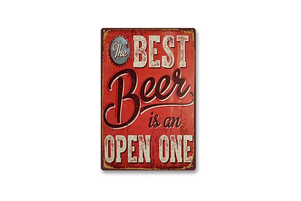 Wir legen großen Wert auf Langlebigkeit und Ästhetik. Unsere Schilder bestehen aus 0,25 mm dickem, hochwertigem Weißblech (Tinplate). Dank modernster Drucktechnologie erzielen wir lebendige Farben und scharfe Details. Die sichtbaren Rost-Effekte, Kratzer und abgenutzten Kanten sind rein grafische Effekte, um den "Vintage-Look" zu erzeugen. Das bedeutet für Sie: Kein echter Rost, sondern eine glatte, saubere und langlebige Oberfläche.