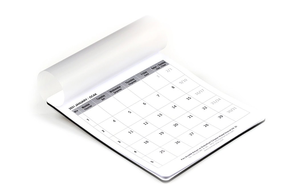 Das Produkt ist sowohl praktisch als auch werbewirksam – Ihr Logo bleibt das ganze Jahr über sichtbar und stärkt Ihre Markenbindung. Dank des hochwertigen Drucks und der transparenten PVC-Abdeckung wird Ihre Unternehmensidentität klar und professionell präsentiert.