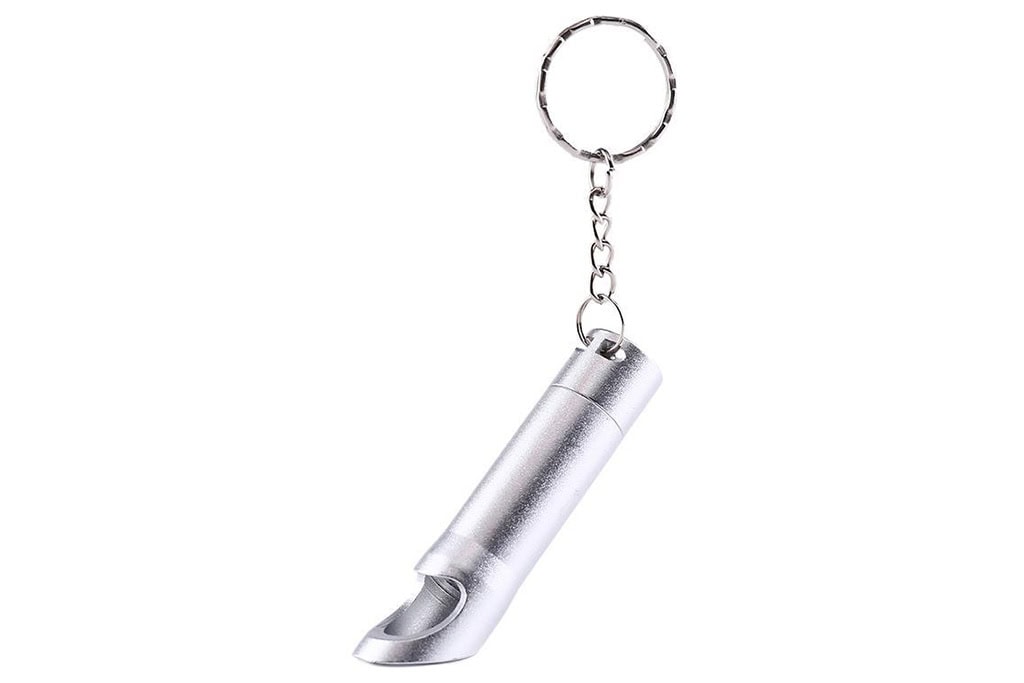 Dieser multifunktionale Schlüsselanhänger vereint einen Flaschenöffner, eine LED-Taschenlampe und einen praktischen Schlüsselring. Er ist ein unverzichtbares Accessoire für den Alltag und lässt sich problemlos in der Tasche oder am Schlüsselbund tragen.